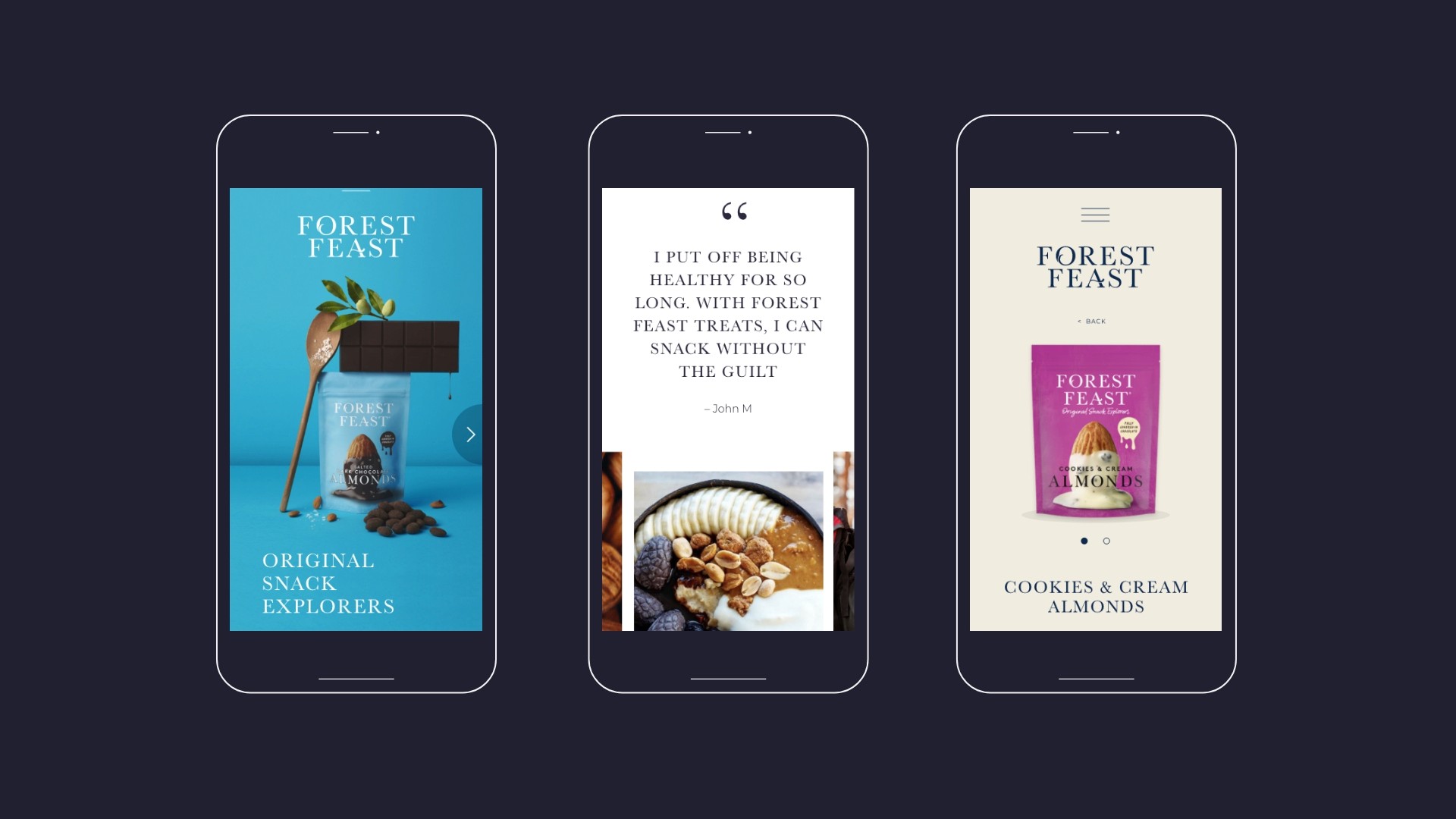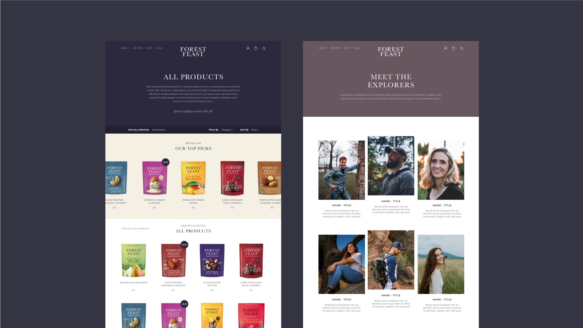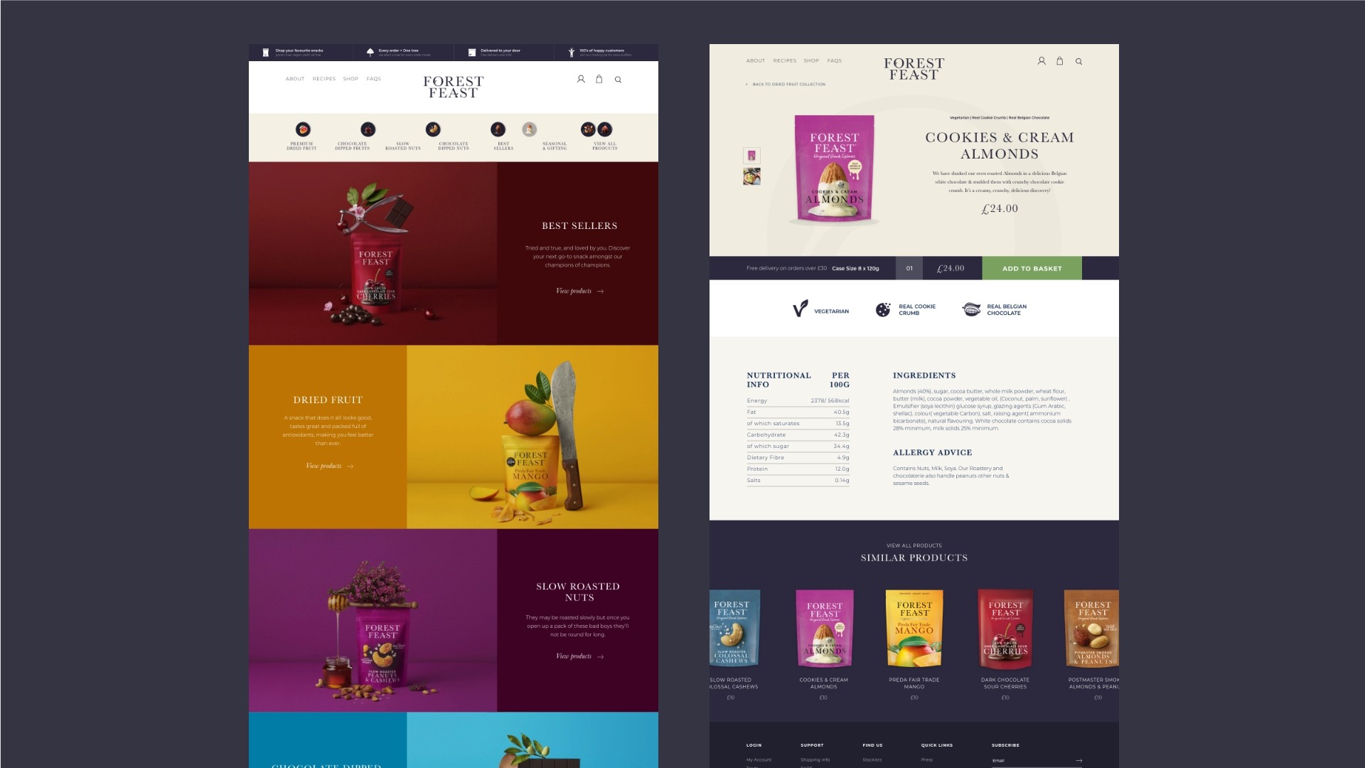 Through a thoughtful combination of creativity and meticulous attention to detail, the final result successfully embodies the brand's playful spirit while effectively presenting their array of scrumptious and healthful snacks. The newly crafted website now stands as a testament to Forest Feast's commitment to offering an enjoyable and user-friendly shopping experience that complements their delectable product range.